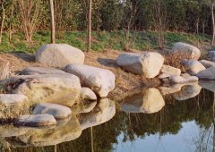 公园小河边摆放大鹅卵···