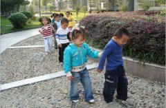 小朋友在鹅卵石路上玩···